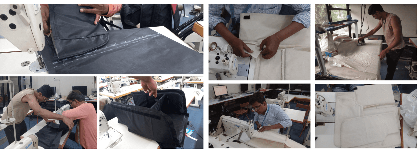 I collaborated with a pattern master to stitch the bag using materials selected through thorough research, ensuring optimal form and water resistance