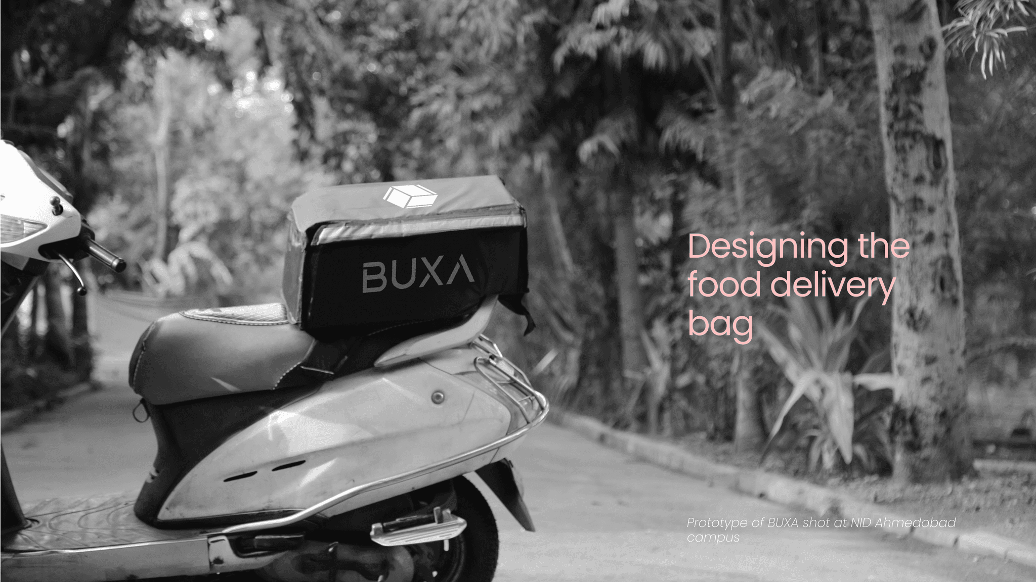 BUXA: A delivery bag designed for improved handling and form, optimized for attachment to bikes and scooters to enhance the delivery process.