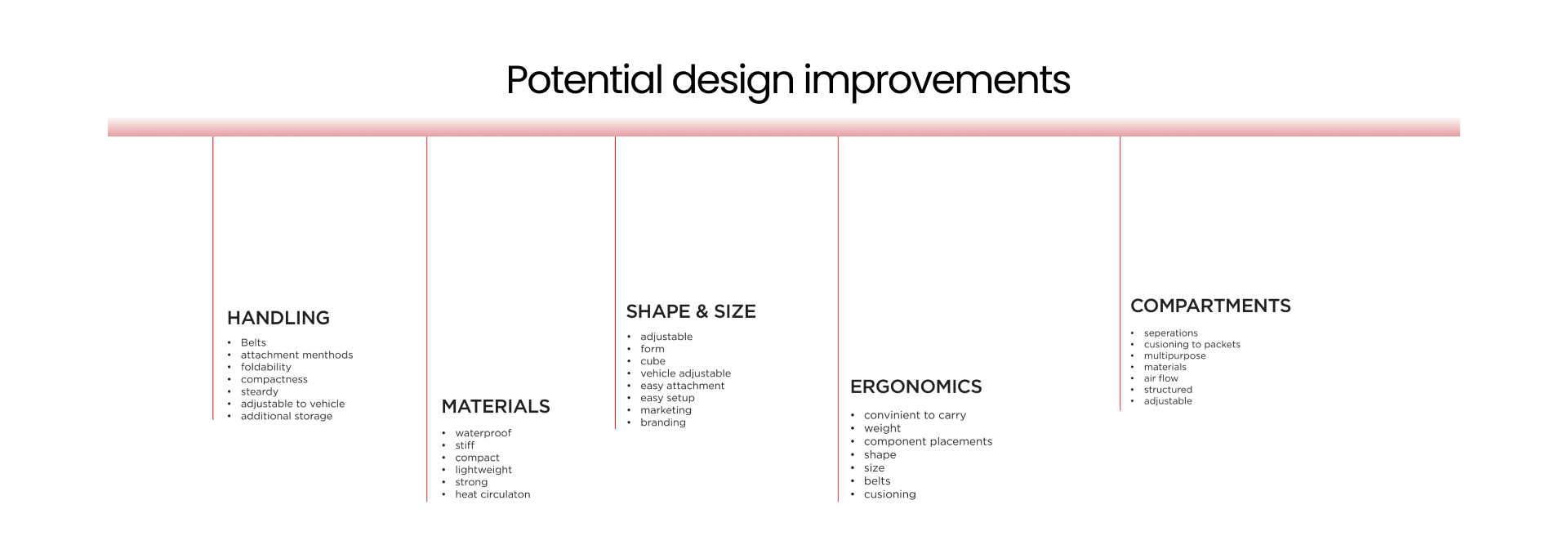 After identifying the pain points, I synthesized the information into a chart that evolved into a project brief, outlining design objectives and desired outcomes.