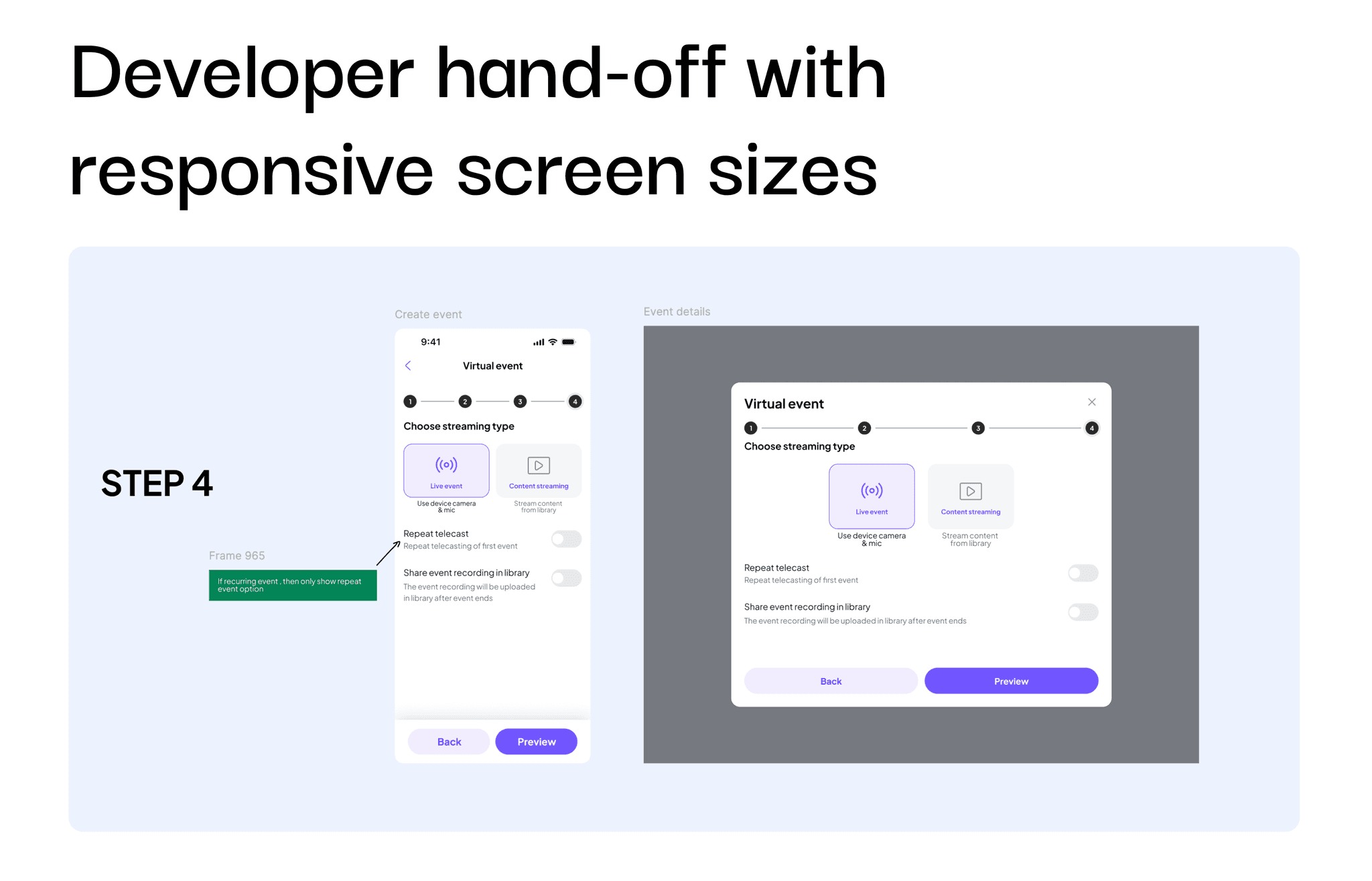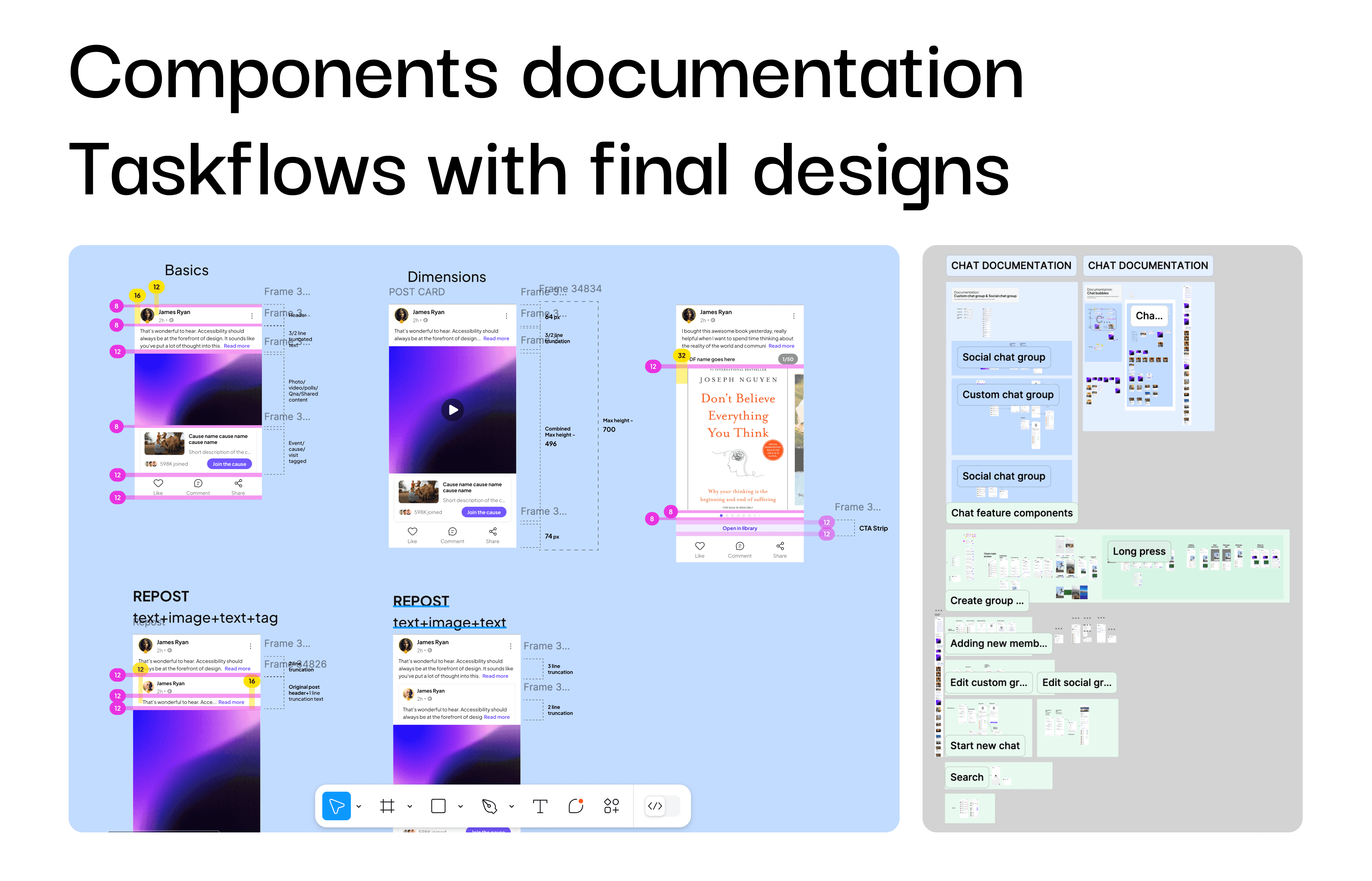 I have experience in making design systems that are development ready, the process included designing the components and then documenting the component behaviors, size variations and variants.