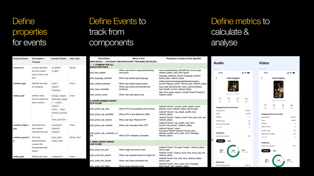 To enable product and business analytics across Hind Social, I designed a structured event tracking system that connects user behavior with measurable insights.