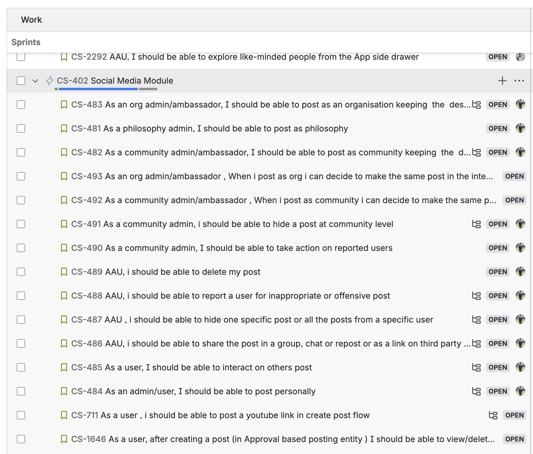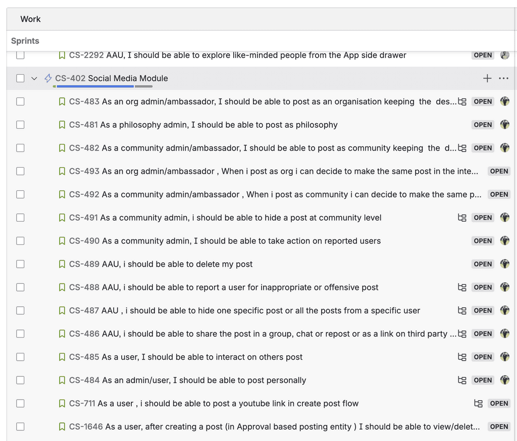 User story development in JIRA