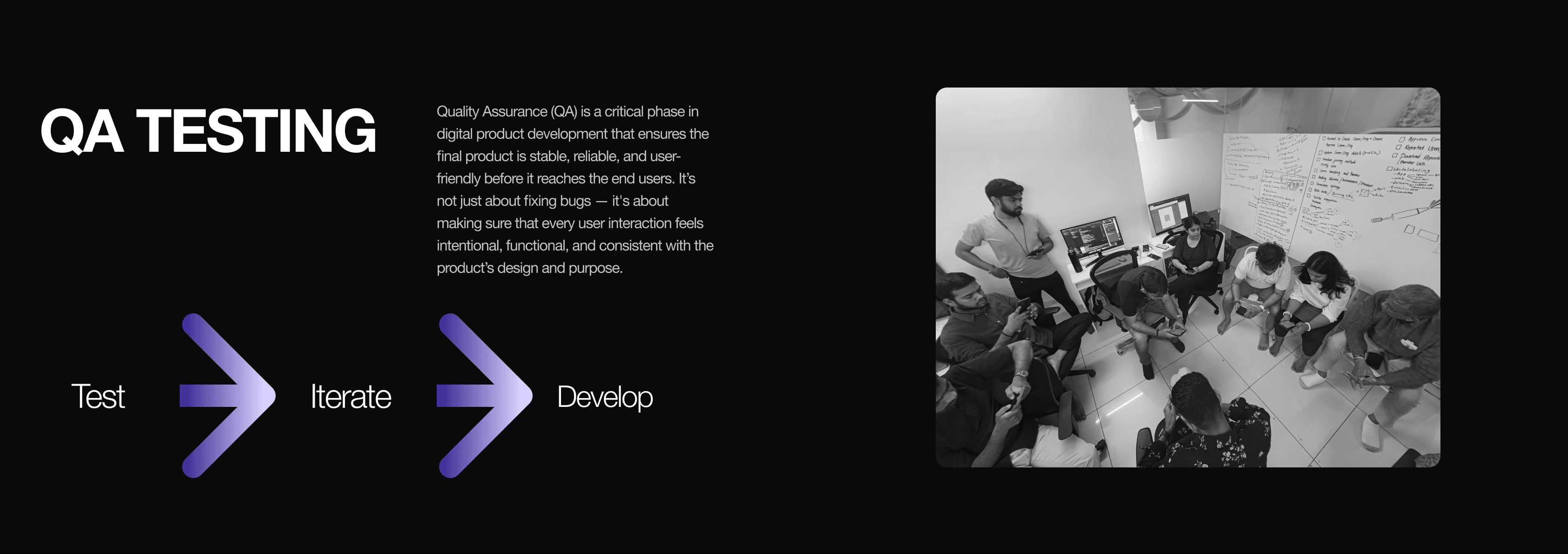 Since we had an in-house engineering team, they had a solid grasp of all the features and business logic. We followed a waterfall development methodology, integrating rapid prototyping and testing cycles. This allowed us to efficiently test and refine each feature with basic QA for individual modules as they were developed, ensuring steady progress throughout.
