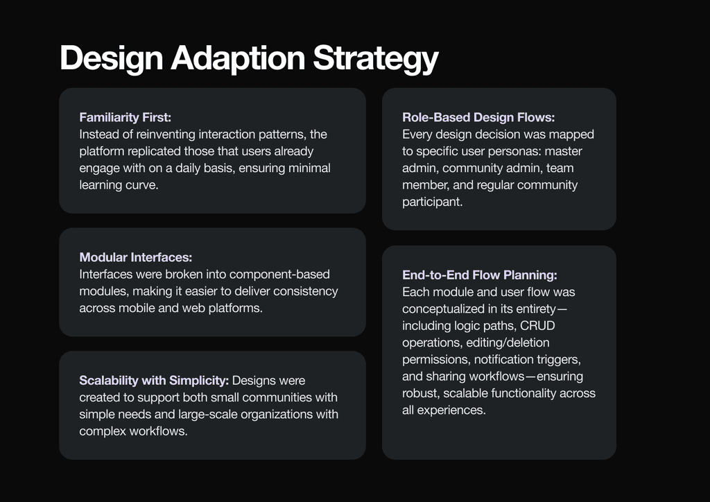 The goal was to make community interaction as seamless and engaging as social media, but rooted in authenticity, learning, and belonging.