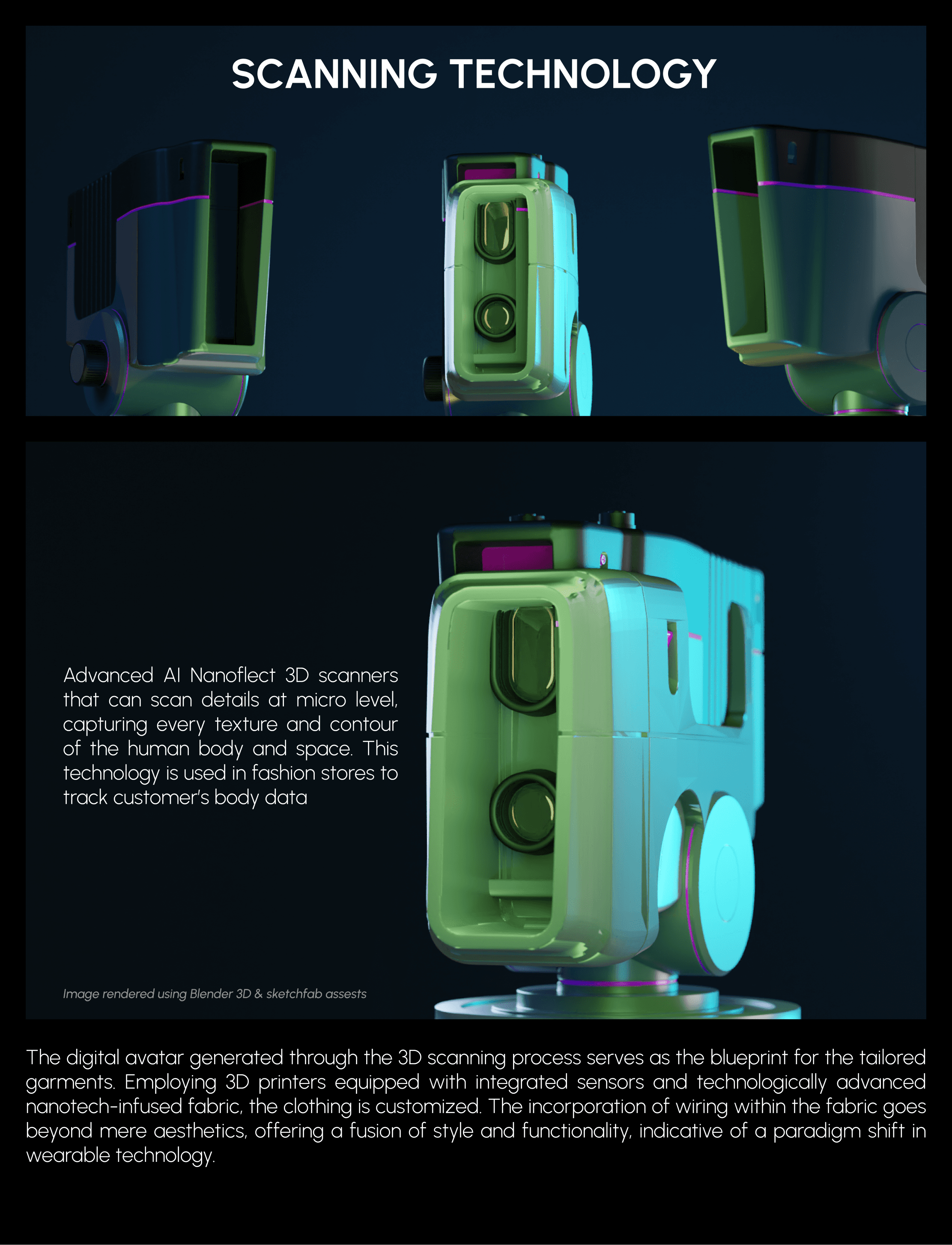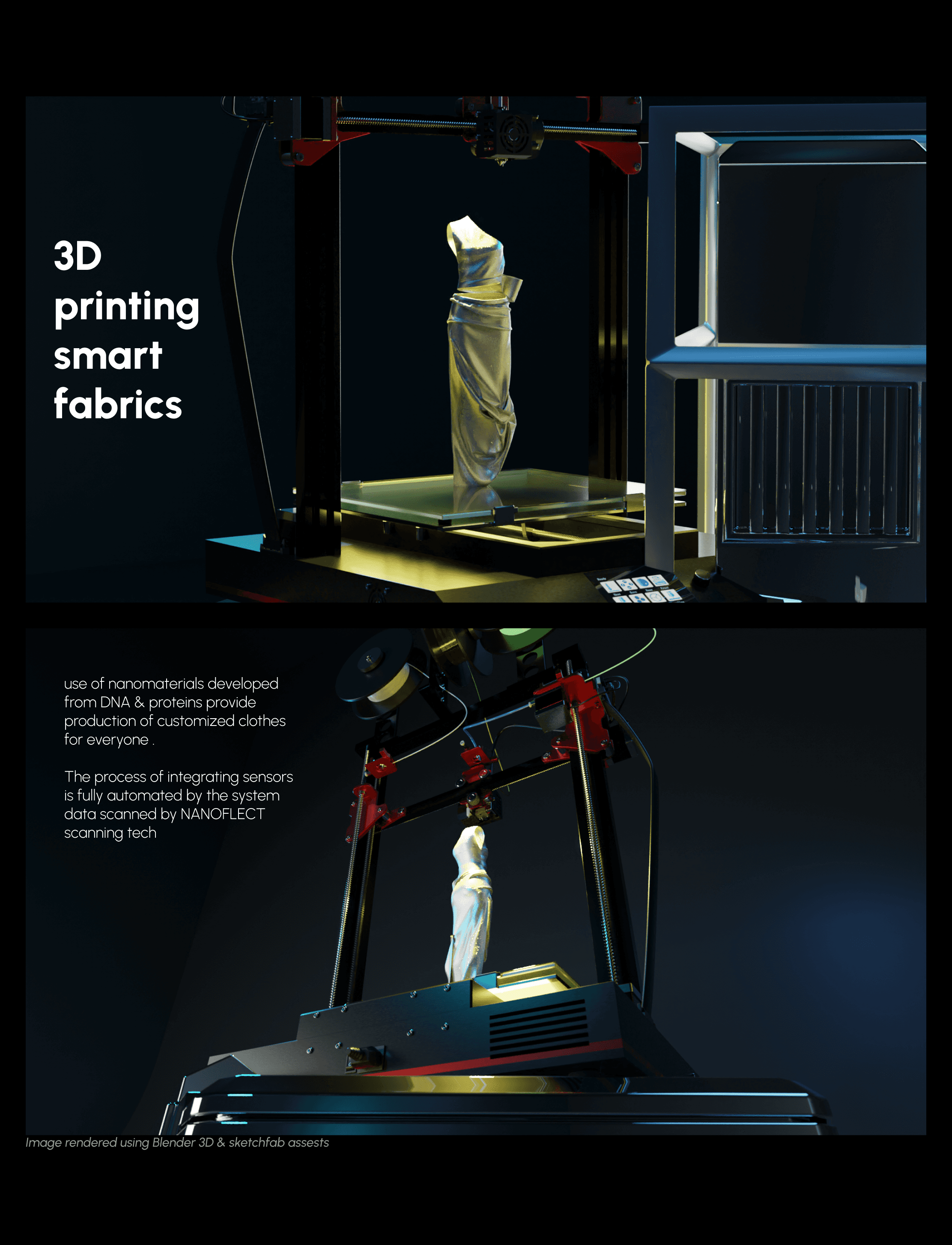 The project focuses on imagining and forecasting the future of the fashion industry in next 100 years, speculating the evolution of technologies such as Nanotech ,spatial computing & additive manufacturing.