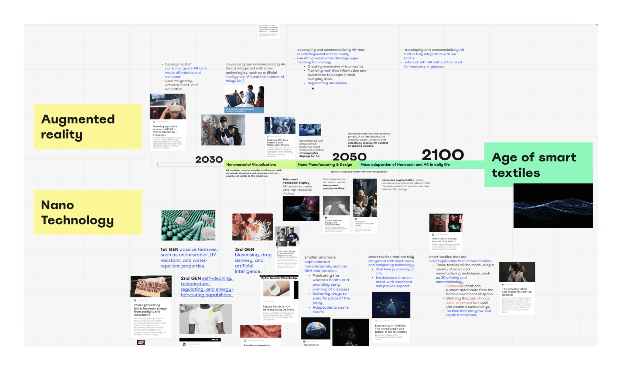 The team researched the future of exponential technologies like spatial computing, nanotechnology, and augmented reality, analyzing their evolution over time and the intersections at various stages of development