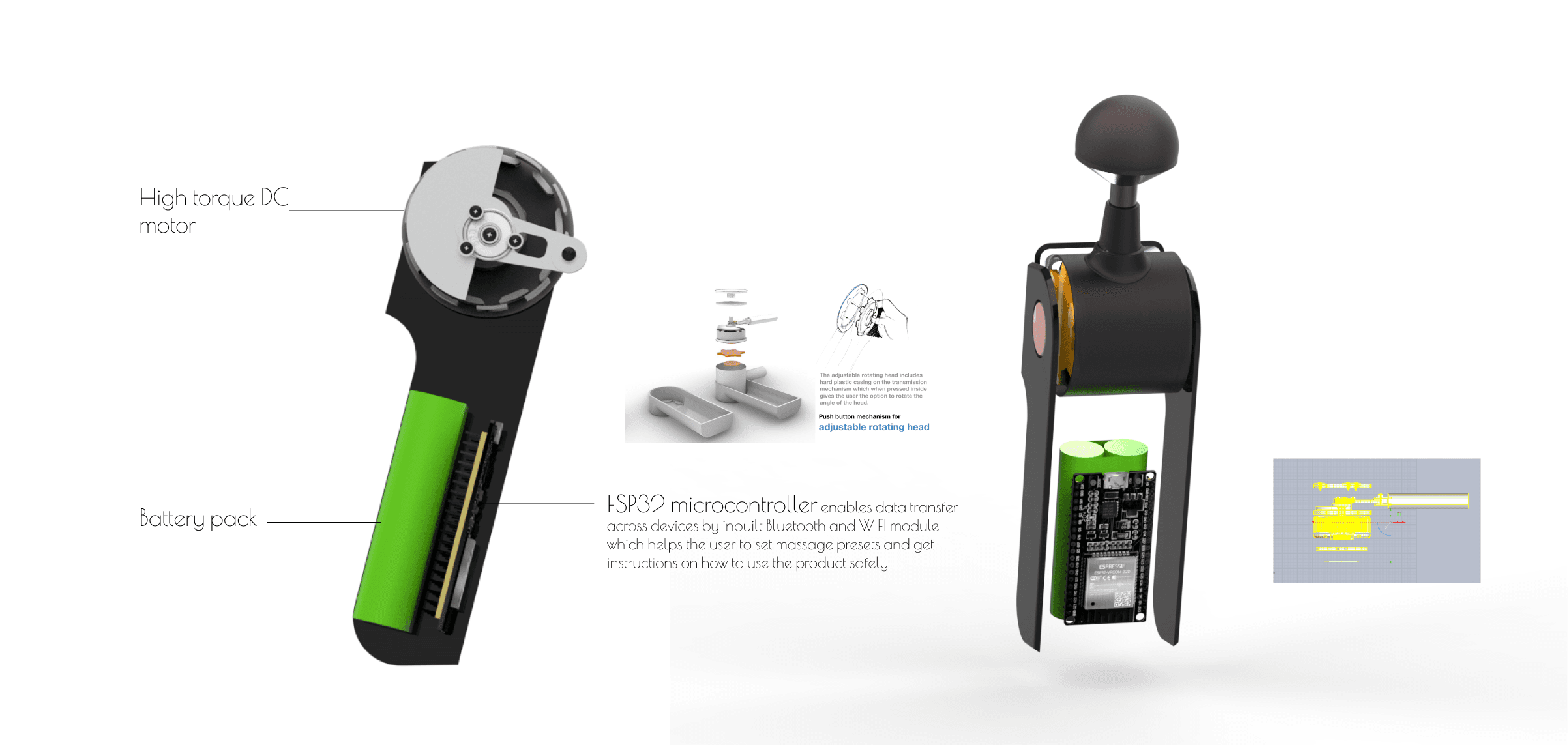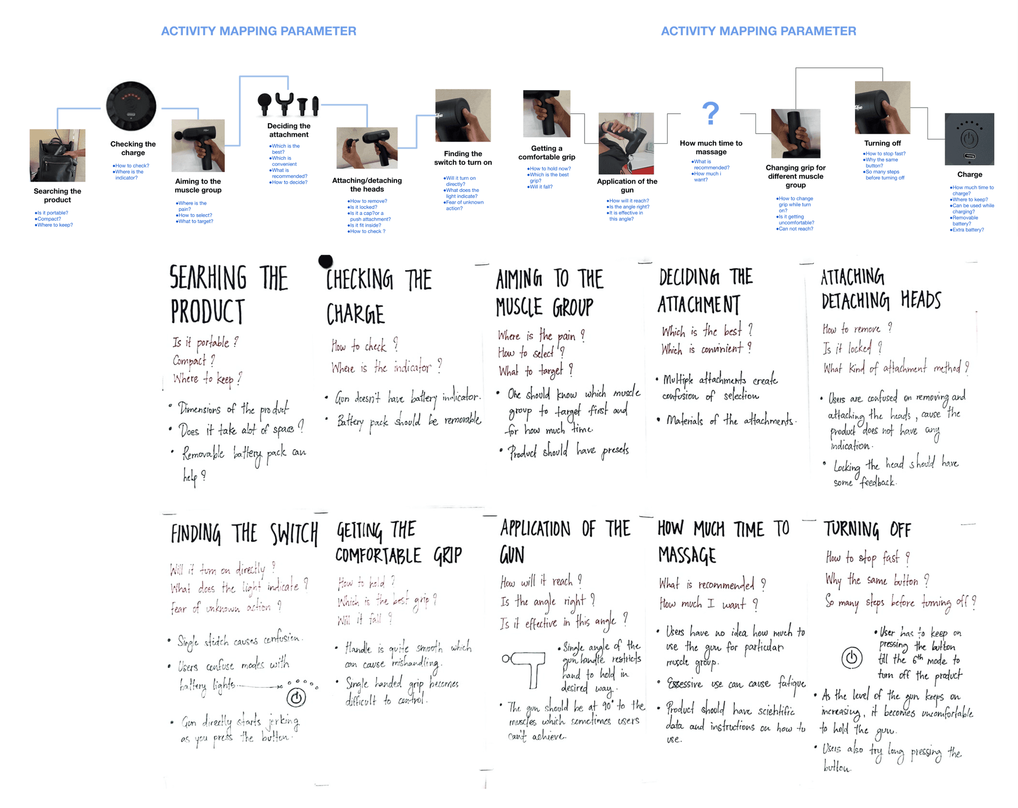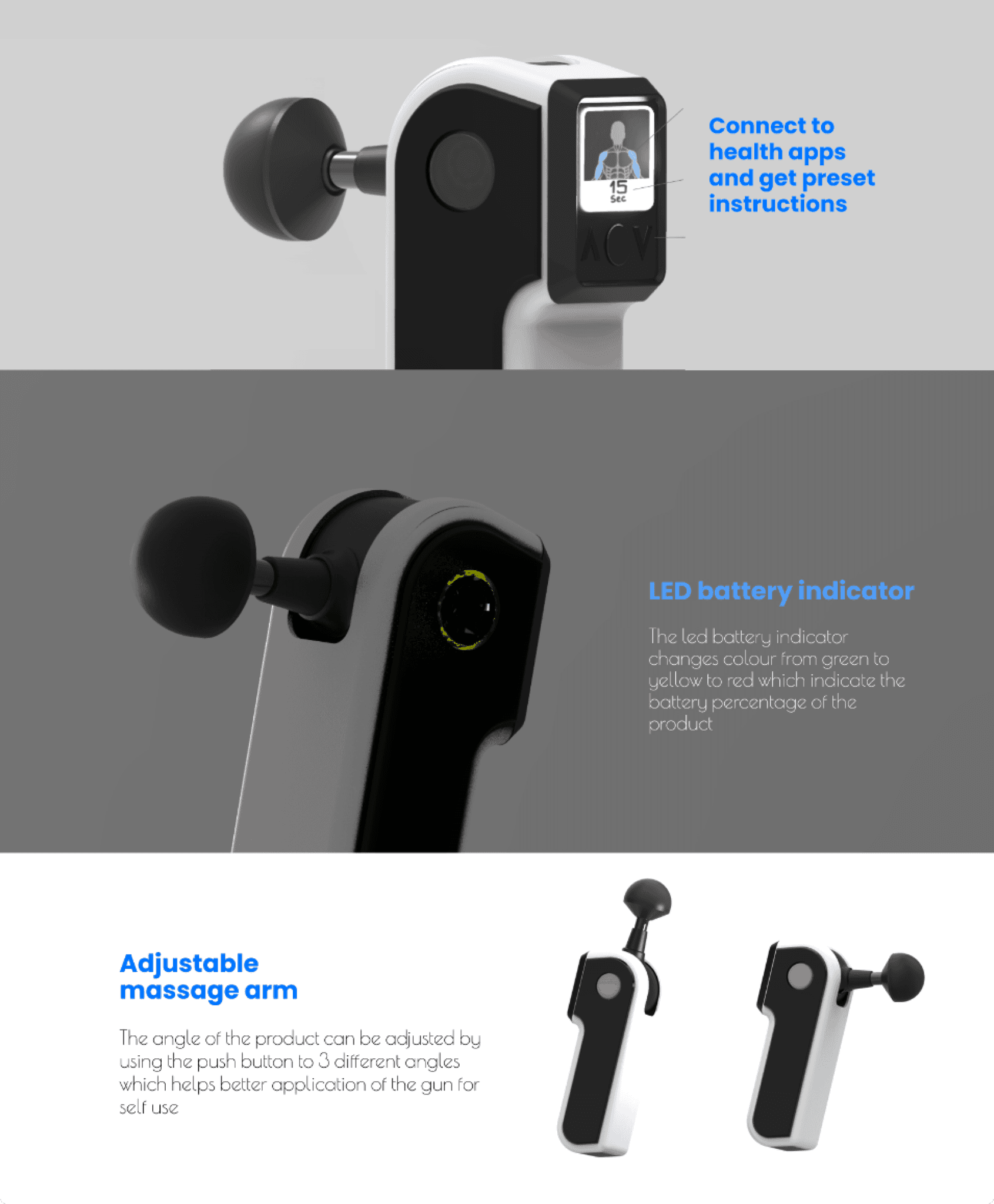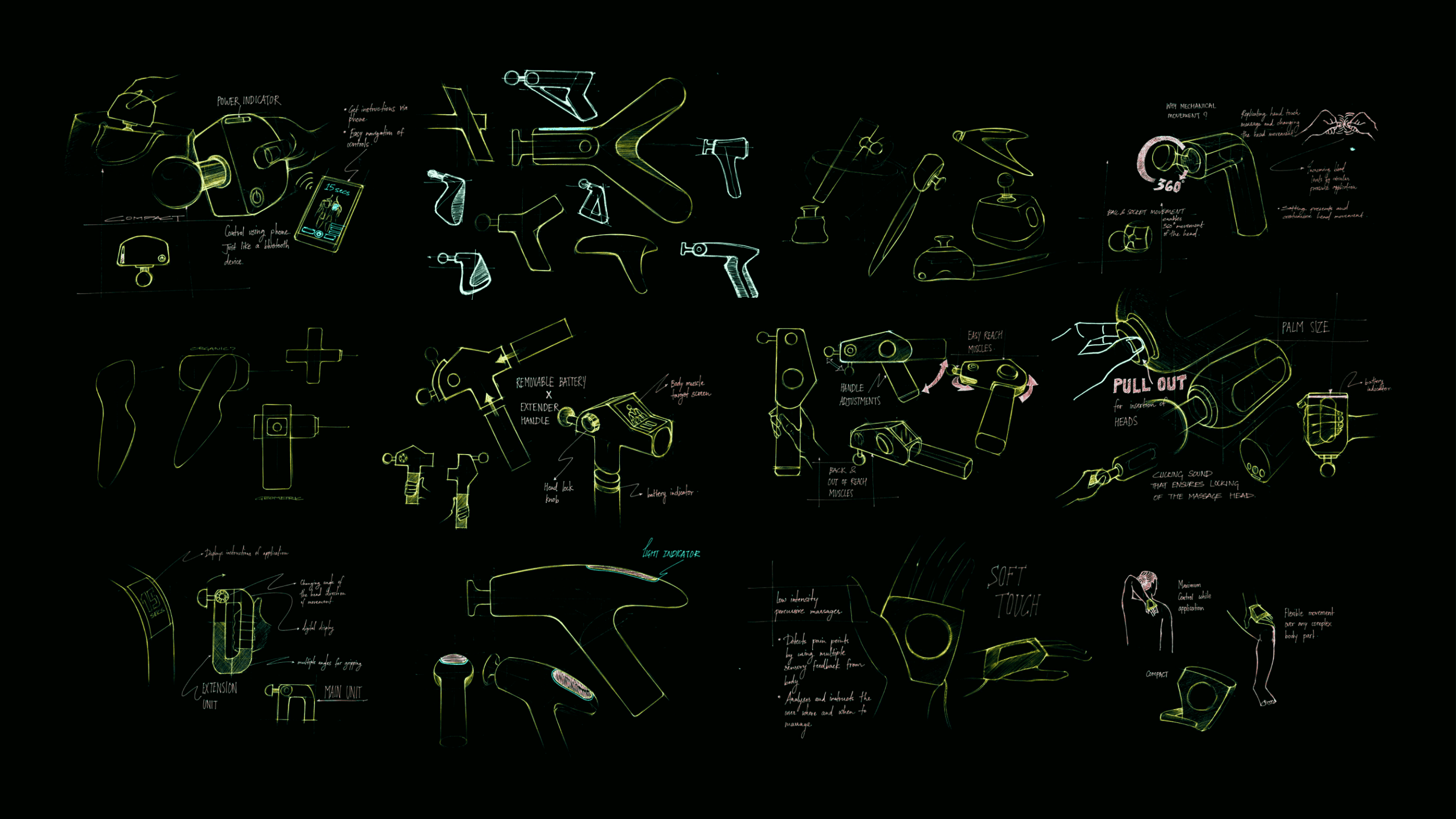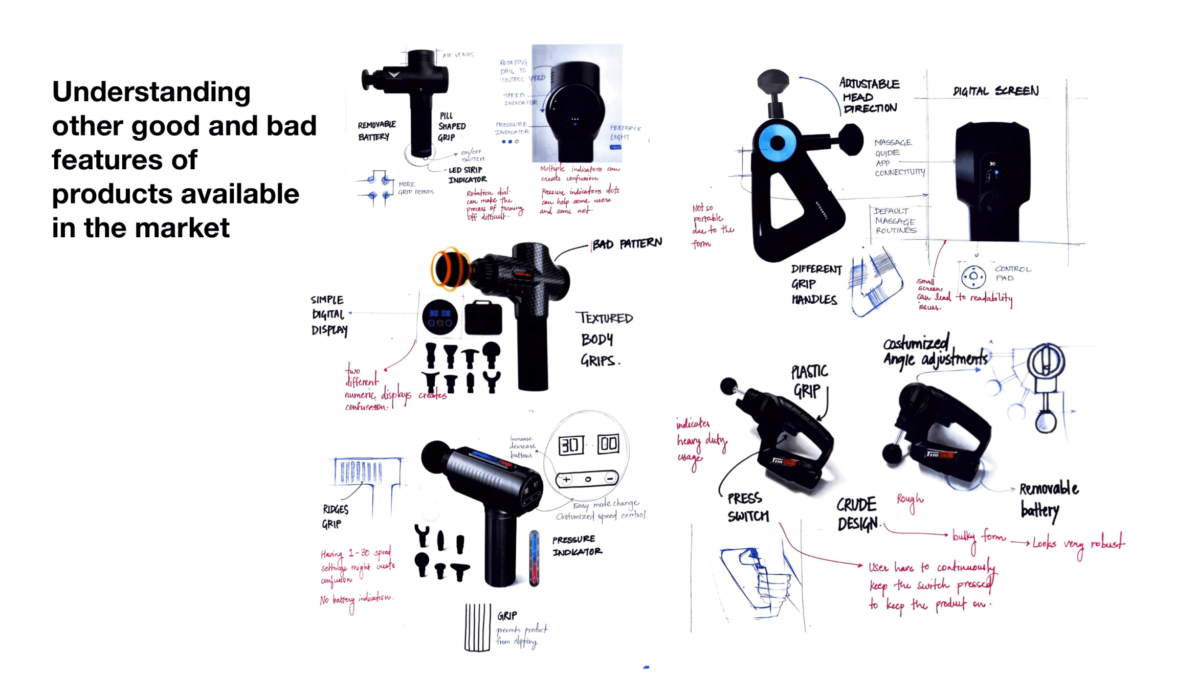 Visualizing a compact massage gun by understanding existing massage techniques & products with tech specifications